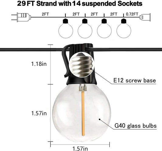 29FT Globe Outdoor String Lights, Shatterproof Patio Lights with 15 Dimmable Plastic Bulbs, Water...